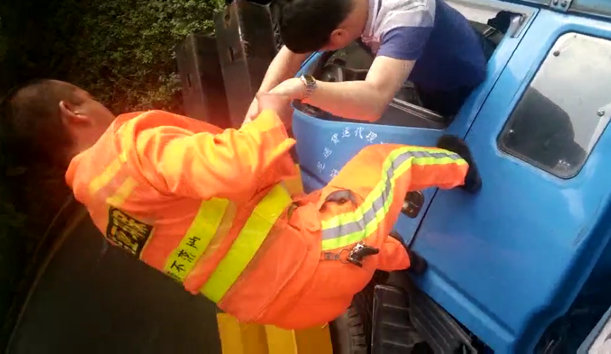 “你没事吧?”、“车里还有其他人吗?”李产粮和周树波一边焦急的询问车内情况,一边赶紧救人,在得知被困男子意识清醒并没受伤后,两人合力从车窗中将男子拉了出来,在看到被困者没有受伤后,李产粮和周树波心里的大石头总算落了下来,两人悄然离开,又默默回到了岗位继续自己的保洁任务。